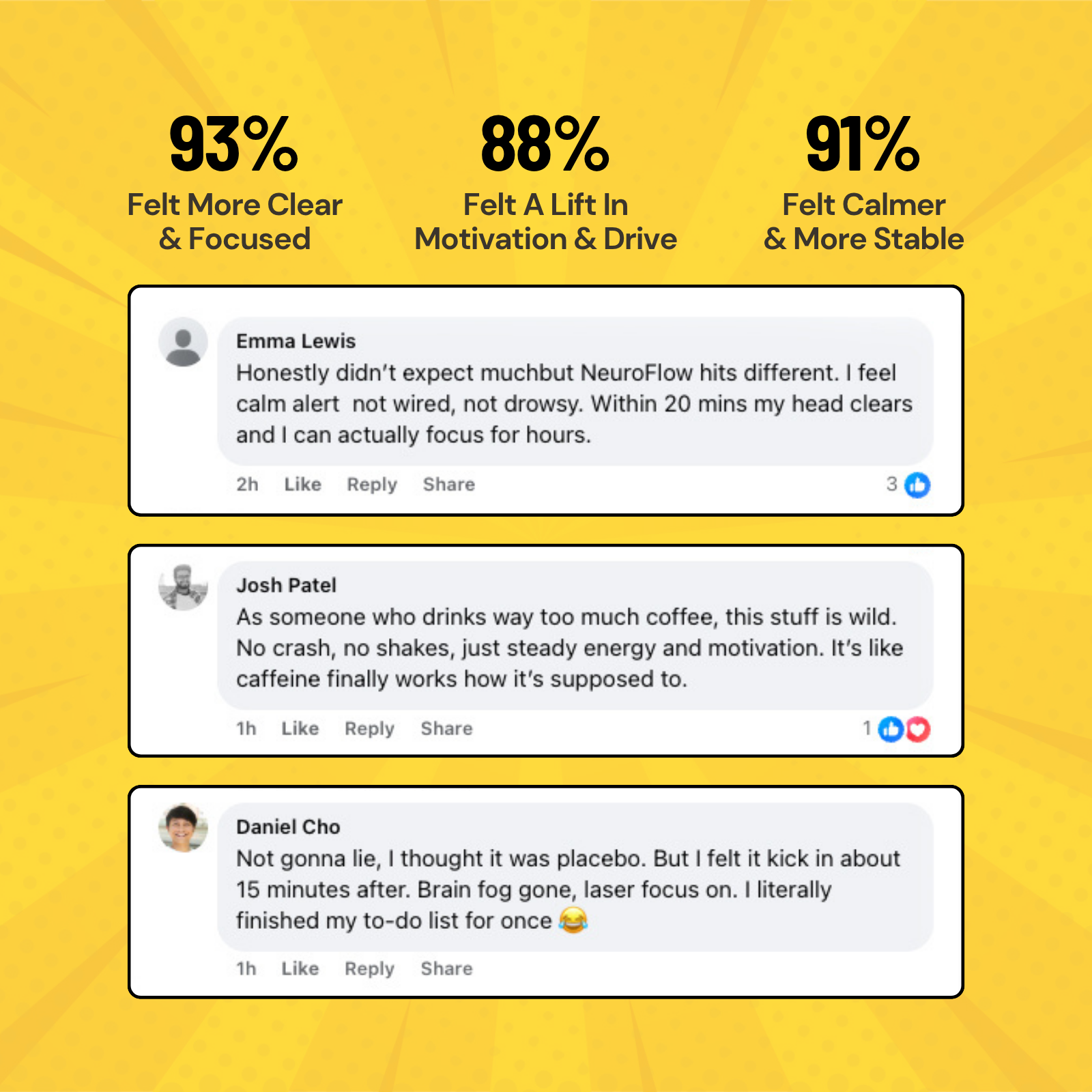 Reported feeling more clear & focused within 30 minutes