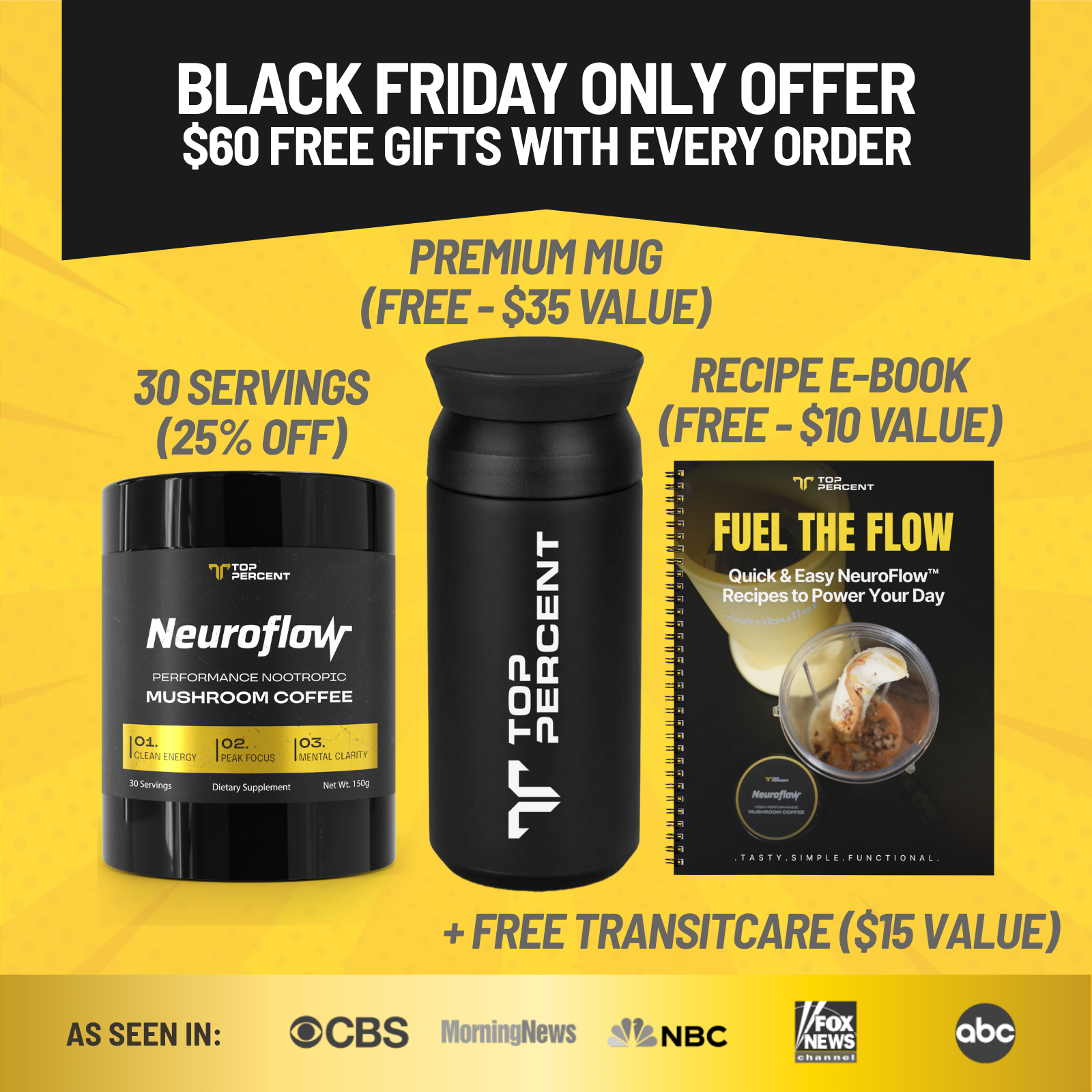 Your Starter Kit: 30 Servings + FREE Mug + FREE Recipe Book + FREE Shipping Protection